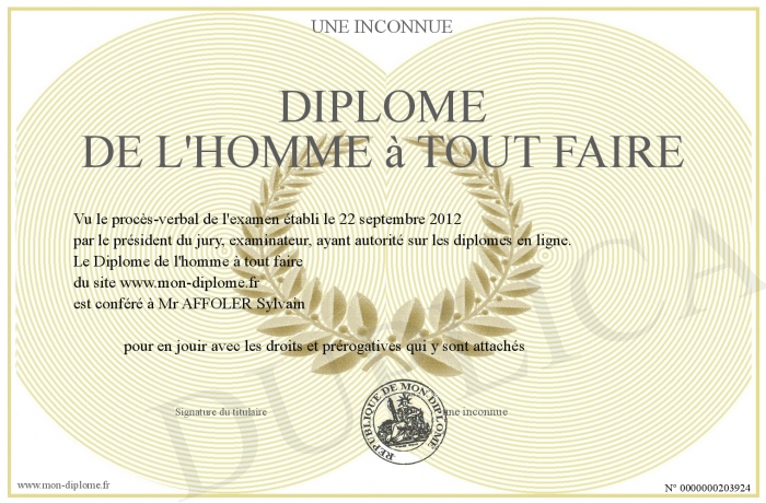 Envoyez par email votre Diplôme de l'homme à tout faire personalisé