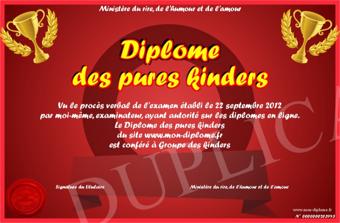 Envoyez par email votre Diplôme des pures kinders personalisé