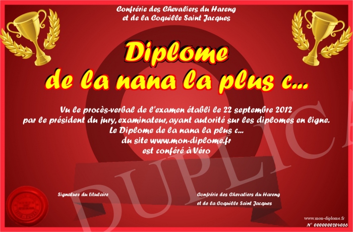 Envoyez par email votre Diplôme de la nana la plus c... personalisé