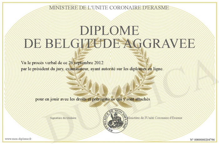 Envoyez par email votre Diplôme de belgitude aggravée personalisé