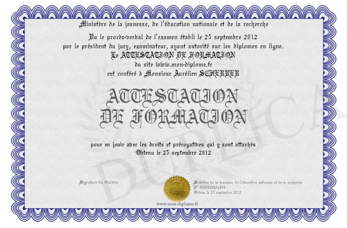 Envoyez par email votre ATTESTATION DE FORMATION personalisé