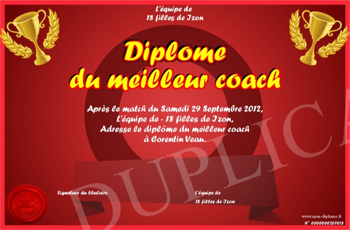 Envoyez par email votre Diplôme du meilleur coach personalisé