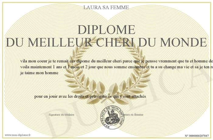 Envoyez par email votre Diplôme du meilleur cheri du monde personalisé