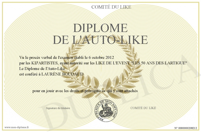 Envoyez par email votre DIPLOME DE L'AUTO-LIKE personalisé