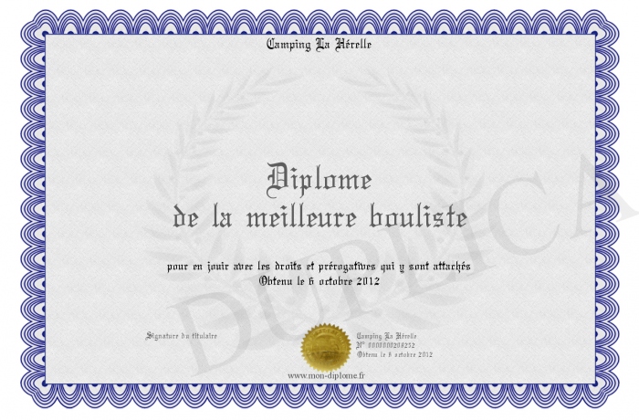 Envoyez par email votre Diplôme de la meilleure bouliste personalisé