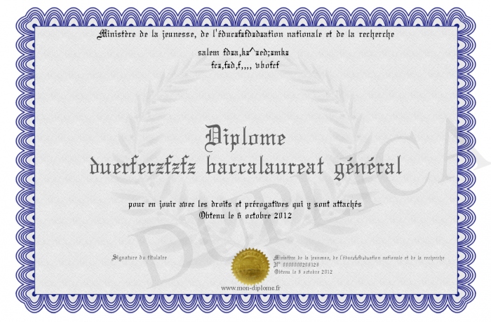 Envoyez par email votre Diplôme duerferzfzfz baccalaureat général personalisé