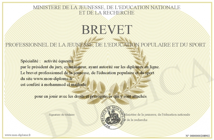 Envoyez par email votre brevet professionnel de la jeunesse, de l'éducation populaire et du sport personalisé