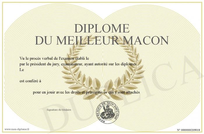Envoyez par email votre Diplôme du meilleur macon personalisé