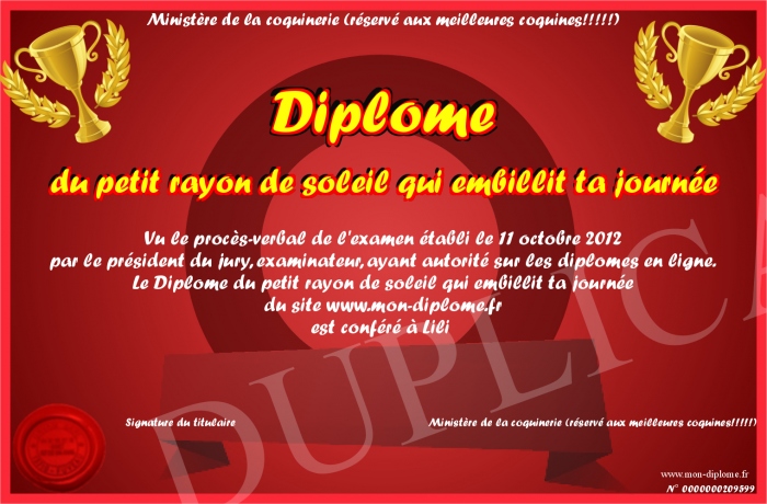 Envoyez par email votre Diplôme du petit rayon de soleil qui embillit ta journée personalisé
