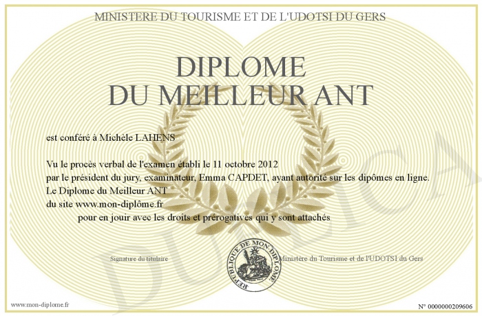 Envoyez par email votre Diplôme du Meilleur ANT personalisé