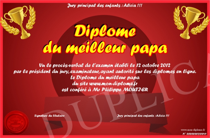 Envoyez par email votre Diplôme du meilleur papa personalisé