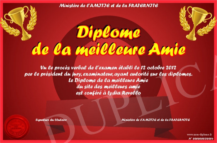 Envoyez par email votre Diplome de la meilleure Amie personalisé