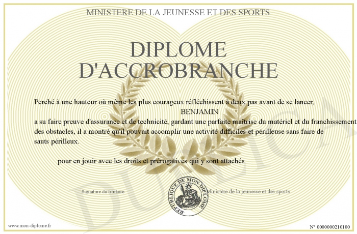 Envoyez par email votre Diplôme d'Accrobranche personalisé