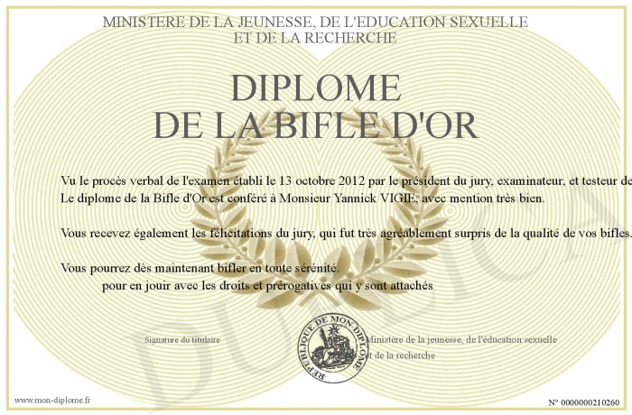 Envoyez par email votre Diplôme de la Bifle d'Or personalisé