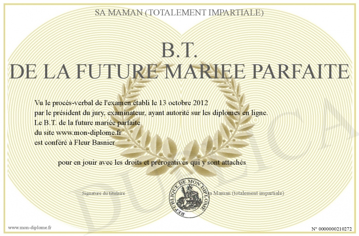 Envoyez par email votre B.T. de la future mariée parfaite personalisé