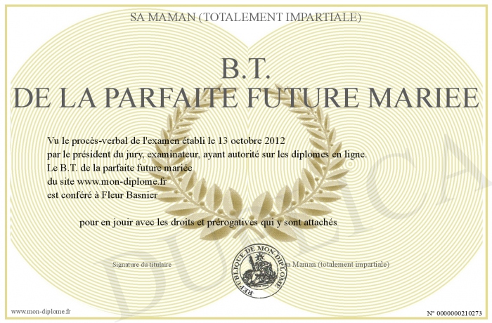 Envoyez par email votre B.T. de la parfaite future mariée personalisé