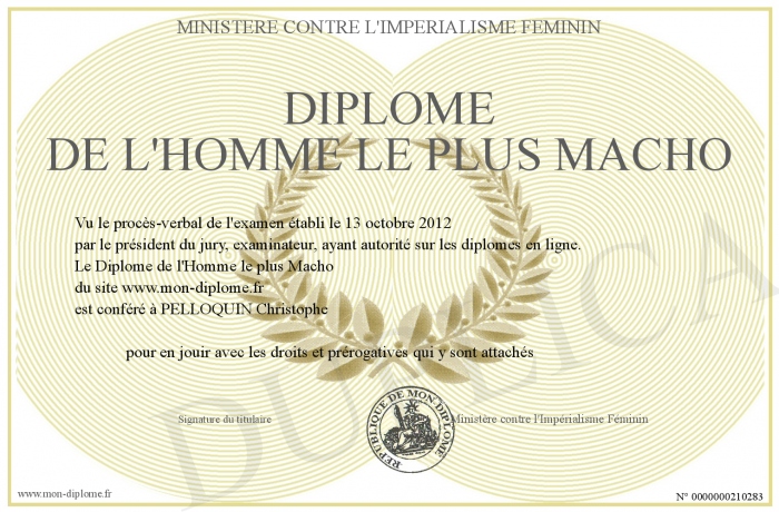 Envoyez par email votre Diplome de l'Homme le plus Macho personalisé