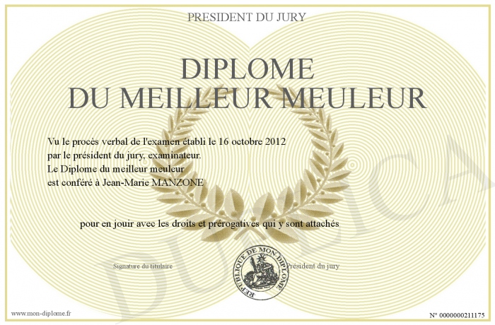 Envoyez par email votre Diplôme du meilleur meuleur personalisé
