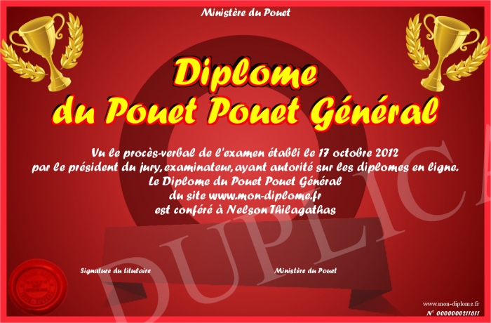 Envoyez par email votre Diplôme du Pouet Pouet Général personalisé