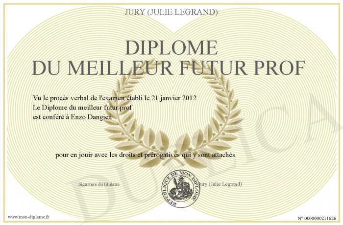 Envoyez par email votre Diplôme du meilleur futur prof personalisé