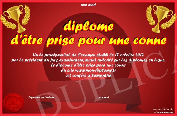Envoyez par email votre diplome d'être prise pour une conne personalisé