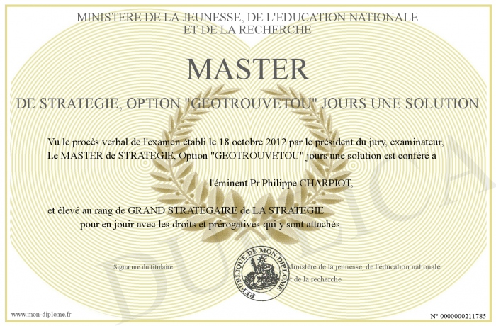 Envoyez par email votre MASTER de STRATEGIE, Option -GEOTROUVETOU- jours une solution personalisé