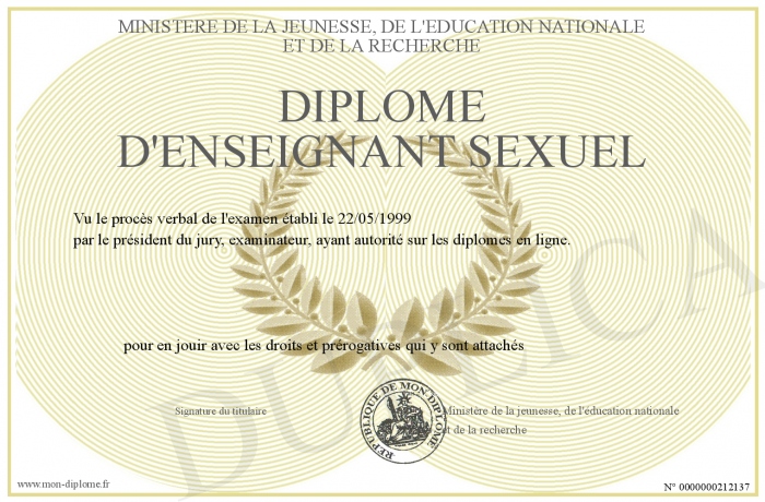 Envoyez par email votre Diplôme d'enseignant sexuel personalisé