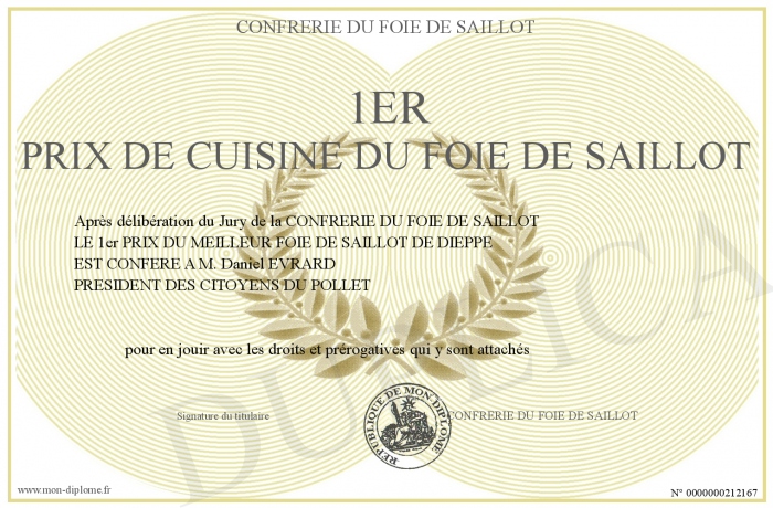Envoyez par email votre 1er Prix de cuisine du foie de Saillot personalisé