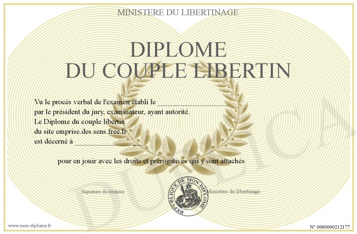 Envoyez par email votre Diplôme du couple libertin personalisé
