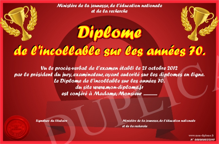 Envoyez par email votre Diplôme de l'incollable sur les années 70. personalisé