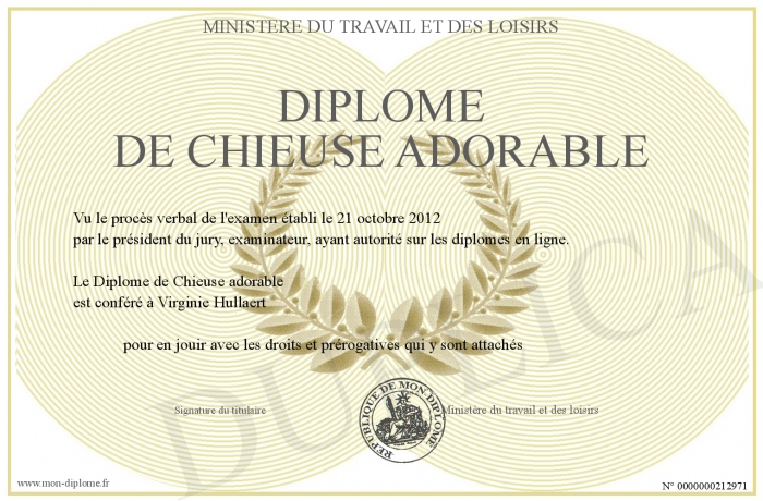 Envoyez par email votre Diplôme de Chieuse adorable personalisé