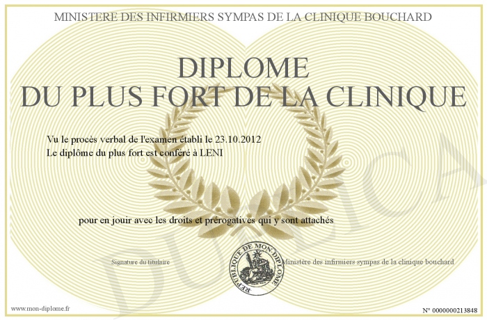 Envoyez par email votre Diplôme du plus fort de la clinique personalisé