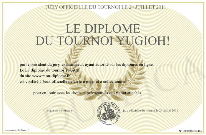 Envoyez par email votre Le diplôme du tournoi YuGiOh! personalisé