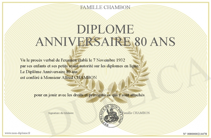 Envoyez par email votre Diplôme Anniversaire 80 ans personalisé