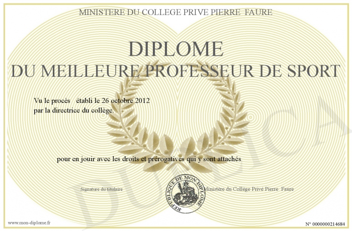 Envoyez par email votre Diplôme du meilleure professeur de sport personalisé