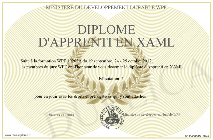 Envoyez par email votre Diplôme d'apprenti en XAML personalisé