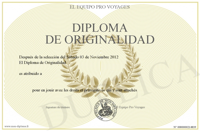 Envoyez par email votre Diploma de Originalidad personalisé