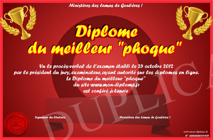 Envoyez par email votre Diplôme du meilleur -phoque- personalisé
