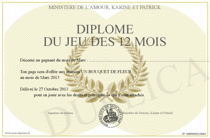 Envoyez par email votre Diplôme du jeu des 12 mois personalisé