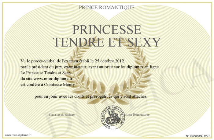 Envoyez par email votre Princesse Tendre et Sexy personalisé