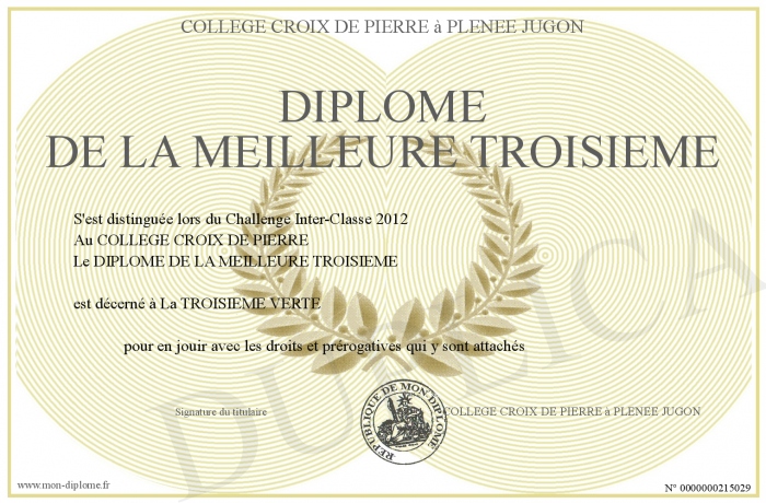 Envoyez par email votre DIPLOME DE LA MEILLEURE TROISIEME personalisé