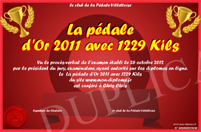 Envoyez par email votre La pédale d'Or 2011 avec 1229 Kils personalisé