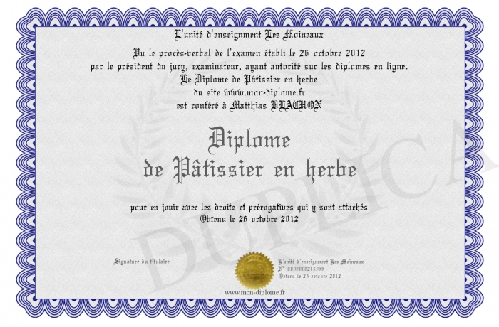 Envoyez par email votre Diplôme de Pâtissier en herbe personalisé