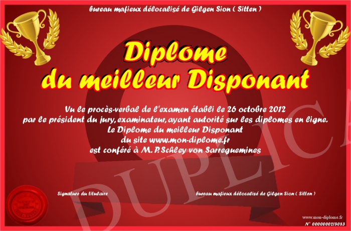 Envoyez par email votre Diplome du meilleur Disponant personalisé