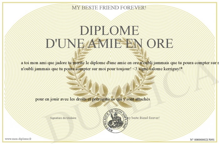 Envoyez par email votre diplome d'une amie en ore personalisé