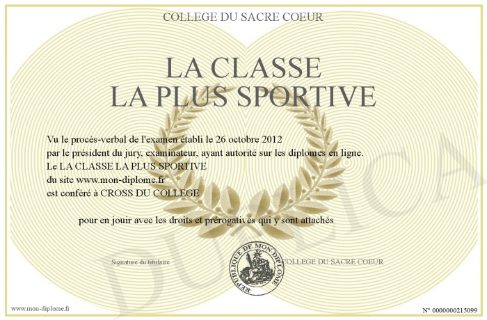 Envoyez par email votre LA CLASSE LA PLUS SPORTIVE personalisé