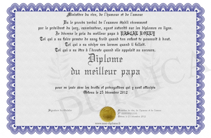 Envoyez par email votre Diplome du meilleur papa personalisé