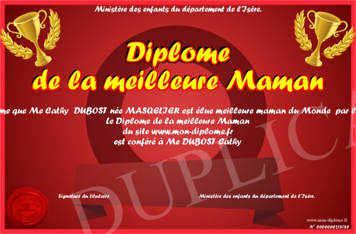 Envoyez par email votre Diplome de la meilleure Maman personalisé
