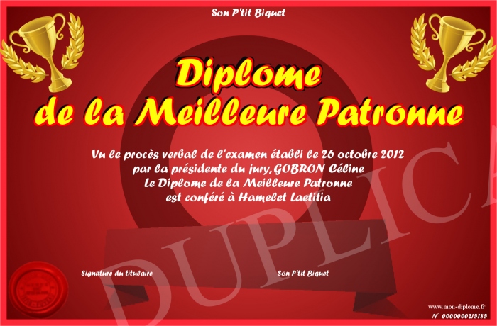 Envoyez par email votre Diplôme de la Meilleure Patronne personalisé