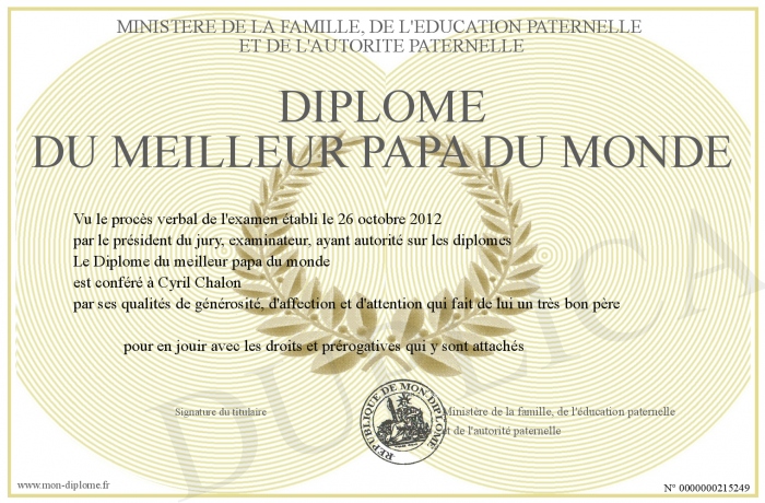 Envoyez par email votre Diplôme du meilleur papa du monde personalisé